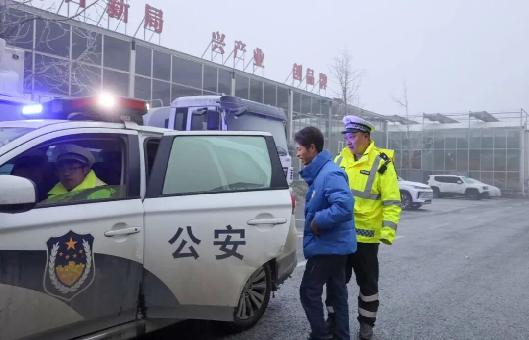 “冷得很,你们广东人肯定受不了这个天气,现在是零下6度了。而且你放在这里不安全,晚上更不安全。”罗小兵一边安抚张某富的情绪,一边将一杯热气腾腾的姜汁茶递到他手中。考虑到该车为柴油车,低温环境下燃油极易凝固,且滞留路段狭窄结冰,夜间停留不仅可能导致车辆故障加重,还存在极大安全隐患,罗小兵当即决定帮助张某富转移车辆。“担心他在那里睡在车上,晚上打不着火就恼火了。”罗小兵说道。